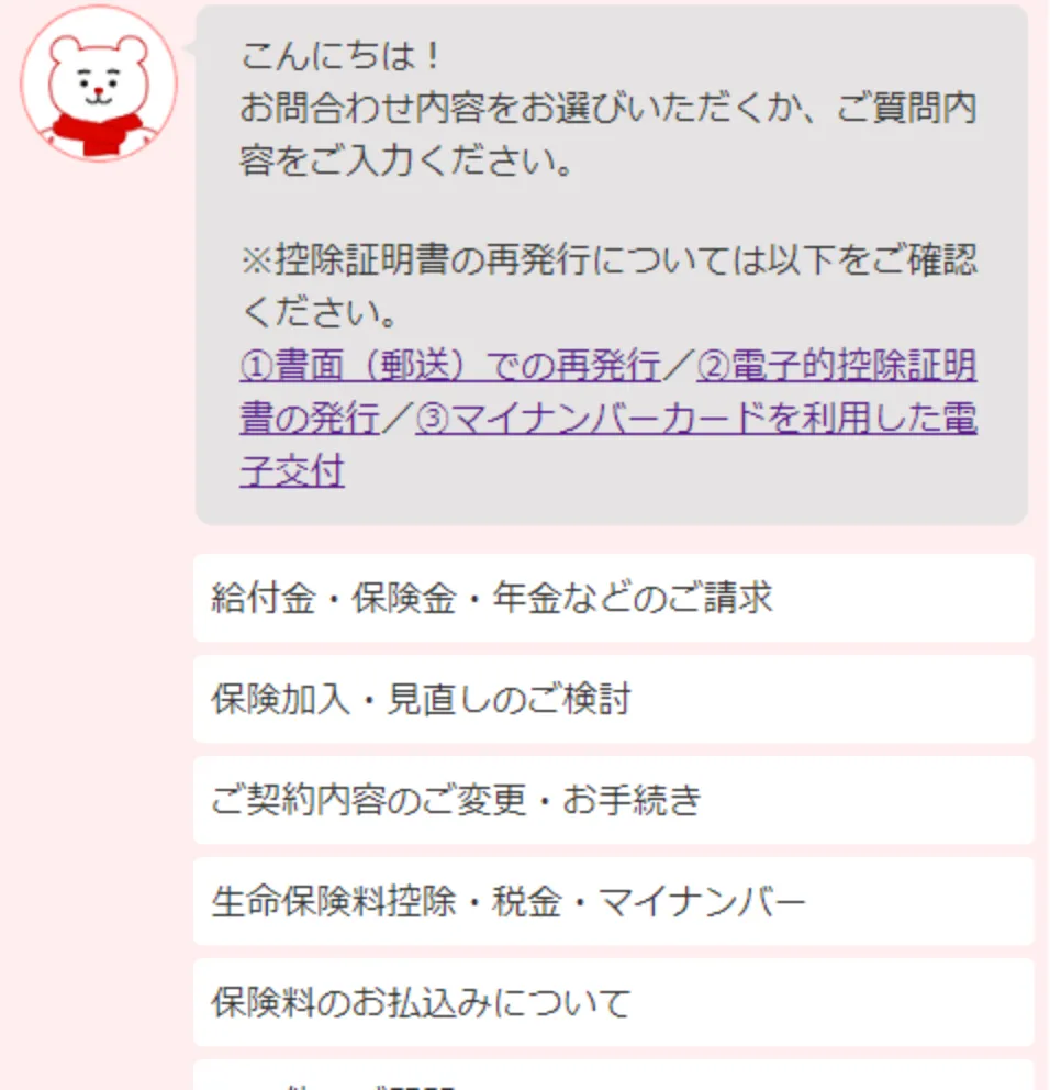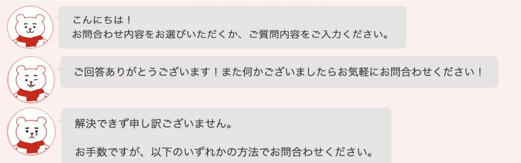 チャットボットのアイコンも工夫をしているポイントのひとつだ。小島氏は「最近は、フコク生命チャットボットのキャラクターの“ふこくま”に表情をつけました。答えられなかった時には『ごめんなさい』の気持ちが伝わるように申し訳なさそうな表情にするなど、お客さまの感情に寄り添えるよう工夫しています。」と説明する。